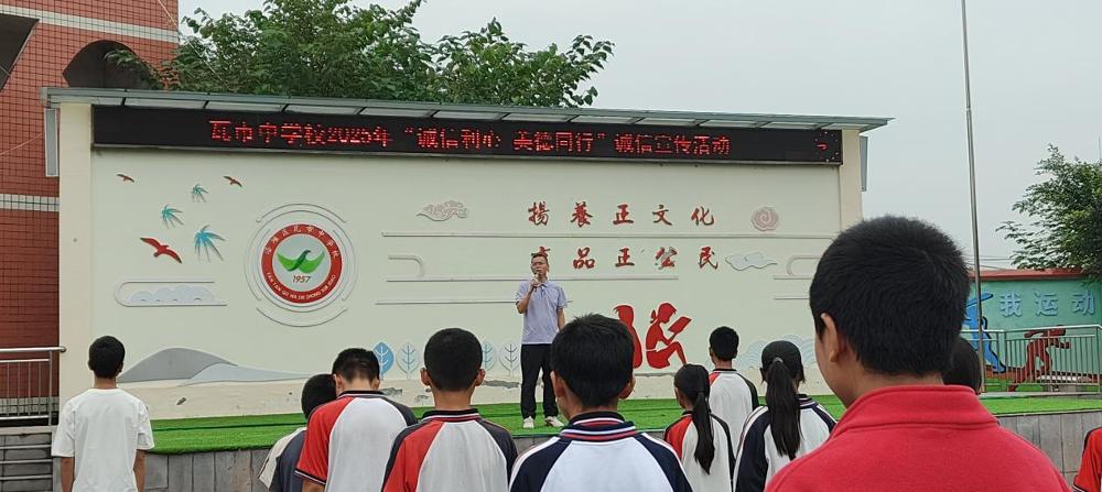 为深入推进校园精神文明建设,强化学生思想道德修养,引导学生树立“诚信立身、诚信立学、诚信立行”的价值观,自贡市沿滩区瓦市中学于近日以“诚信”为主题开展德育宣传活动。本次活动聚焦“诚信在校园”,通过德育主任面向全体师生的专题讲话,将诚信教育融入日常,进一步营造“人人讲诚信、事事守诚信”的校园氛围。